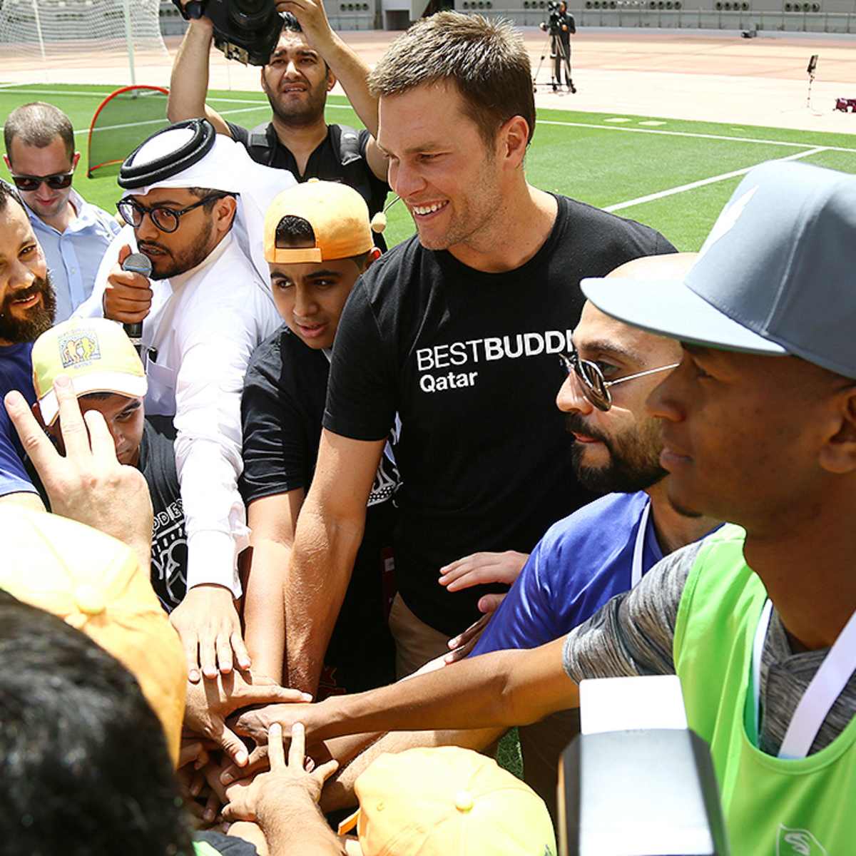 Brady, his wife, model gisele bündchen, and their two children are in qatar as a best buddies global ambassador.